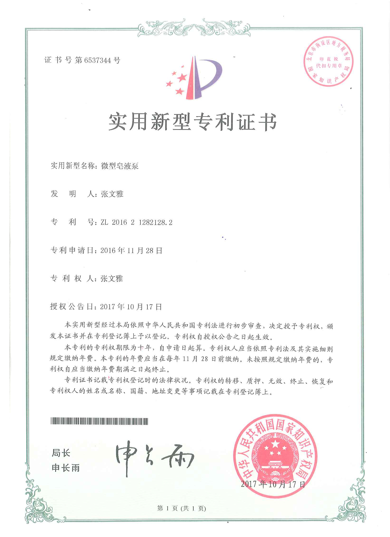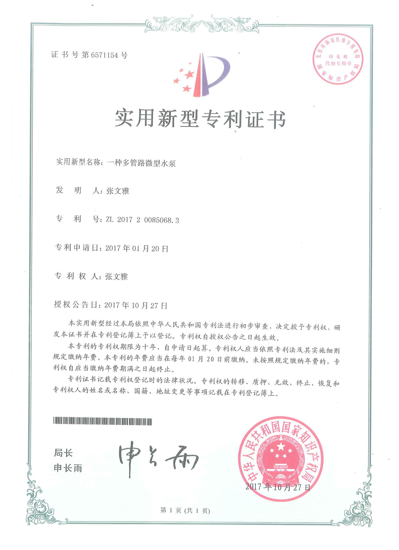 PATENT CERTIFICATION